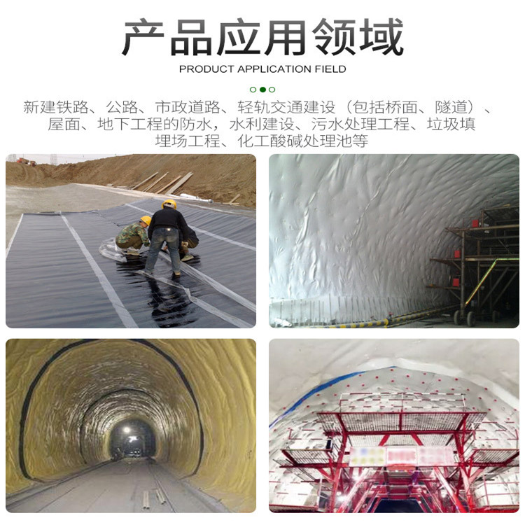 防水板是以高分子聚合物為基本原料制成的一種防滲材料,既可以防止液體滲漏,也可以預(yù)防氣體揮發(fā)。在建筑、交通、地鐵、隧道、工程建設(shè)中廣泛運(yùn)用。防水板主要功能是防止液體的滲漏和氣體的揮發(fā), 防水板在巖石工程中的作用主要為防滲和隔離,但是同時(shí)也起到加強(qiáng)和防護(hù)的作用。它主要應(yīng)用在:土石壩、堆石壩、砌石壩、混凝土壩、尾礦壩、污水庫(kù)壩、渠道、蓄液池等工程的防滲,地鐵、地下室和隧道防滲襯砌,公路鐵路地基的防滲,衛(wèi)生垃圾填埋場(chǎng)中配合長(zhǎng)絲土工布、膨潤(rùn)土防水毯等土工材料使用等等。