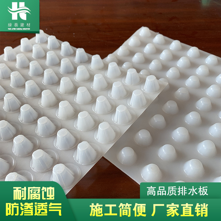 防水性能:聚乙烯(HDPE) 聚苯乙烯(PVC)防排水保護(hù)板材料本身就是一種很好的防水材料。通過采用可靠的連接方式,使防排水板成為一種很好的輔助防水材料。