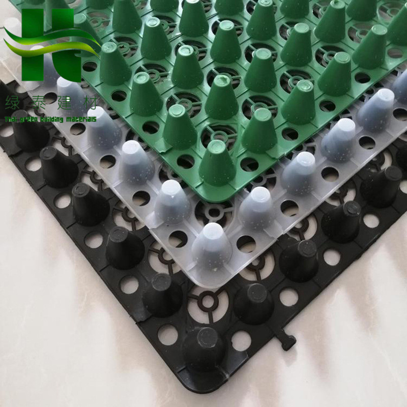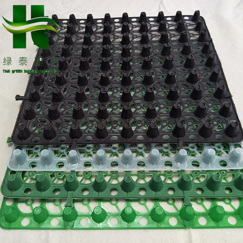 蓄排水板采用聚乙烯或聚丙烯經(jīng)加熱加壓定型形成的一種既能營造具有立體空間支撐剛度的排水通道,又可蓄水的一種輕型板材。該種板材自身就具有蓄水、排水兩種綜合功能,板材具有空間剛度極高的特點,抗壓性明顯優(yōu)于同類產(chǎn)品(可以通過現(xiàn)場試驗檢驗),能夠承受400Kpa以上的高抗壓負荷,同時可以承受在種植頂板回填土過程中機械碾壓的極端負荷情況。