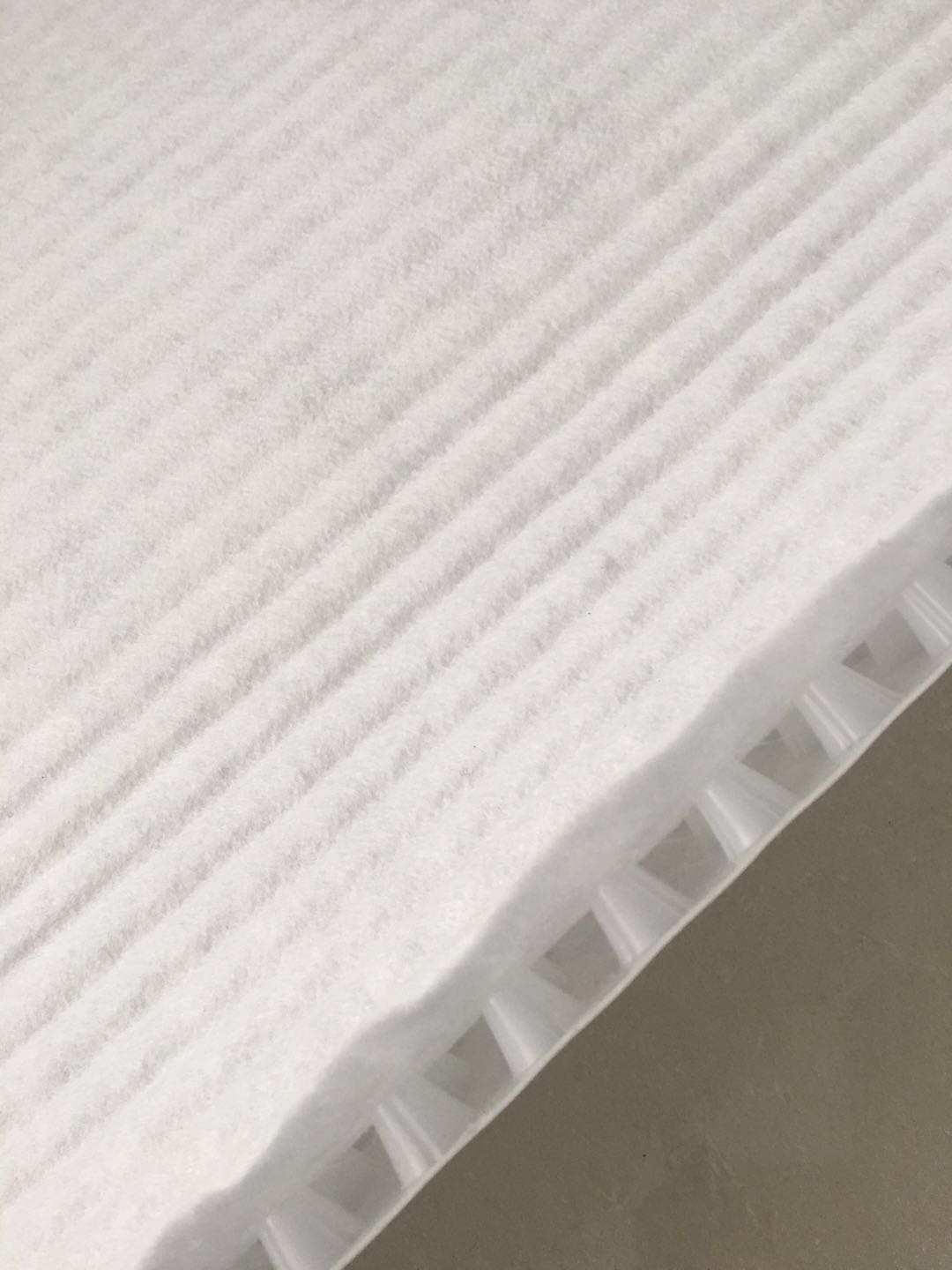 復(fù)合排水板(又名三維復(fù)合排水網(wǎng)、排水網(wǎng)格)是一種新型的排水土工材料。以高密度聚乙烯(HDPE)為原料,經(jīng)特殊的擠出成型工藝加工而成。具有三層特殊結(jié)構(gòu)。中間筋條剛性大,縱向排列,形成排水通道,上下交叉排列的筋條形成支撐防止土工布嵌入排水通道,即使在很高的荷載下也能保持很高的排水性能。雙面粘接滲水土工布復(fù)合使用,具有“反濾--排水--透氣--保護(hù)”綜合性能,是目前理想的排水材料。1、復(fù)合排水板是由一層或兩層無(wú)紡?fù)凉げ寂c一層不同結(jié)構(gòu)的三維合成土工網(wǎng)芯組成,具有排水隔離功能的復(fù)合結(jié)構(gòu)體;2、復(fù)合排水板應(yīng)用于地下車庫(kù)頂板種植、屋頂種植、地下側(cè)墻保護(hù)、排水,底板排水,隧道防水、排水,公路護(hù)坡,鹽堿地、沙漠種植、人工湖;3、復(fù)合排水板的應(yīng)用功能可隨意彎曲施工,快速排水防水層的靜水、HDPE土工膜積水,及時(shí)減輕主體結(jié)構(gòu)荷載,保護(hù)防水層和結(jié)構(gòu),避免遭受土壤回填,植物根刺、酸堿、地下昆蟲(chóng)和微生物等對(duì)防水層的破壞。結(jié)合防水層使用,起到雙重防水防滲,使防水層隔絕氣體、防止氧化,大大提高防水系統(tǒng)的壽命。柔韌性材料,抗壓、抗拉強(qiáng)度高,滿足開(kāi)裂縫所需的延伸率及行車道路的設(shè)施。經(jīng)久耐用的材料,滿足各種種植屋面使用,也可應(yīng)用老樓屋頂?shù)姆N植。施工簡(jiǎn)便,也可應(yīng)用于老樓屋頂?shù)姆N植。
