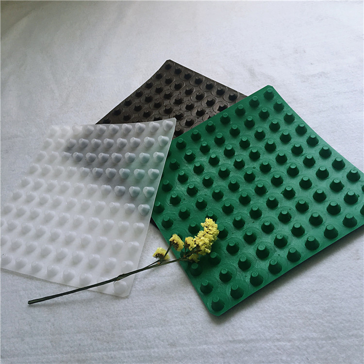 圓錐突臺的頂面膠接一層過濾土工布,以阻止泥土微粒通過,從而避免排水通道阻塞使孔道排水順暢。 傳統(tǒng)的排水方式使用磚石瓦塊作為導(dǎo)濾層、使用較多的鵝卵石或碎石作為濾水層、將水排到指定地點(diǎn)。而用排水板取代鵝卵石濾水層來排水則省時(shí)、省力又節(jié)能、節(jié)省投資、還能降低建筑物的荷載。