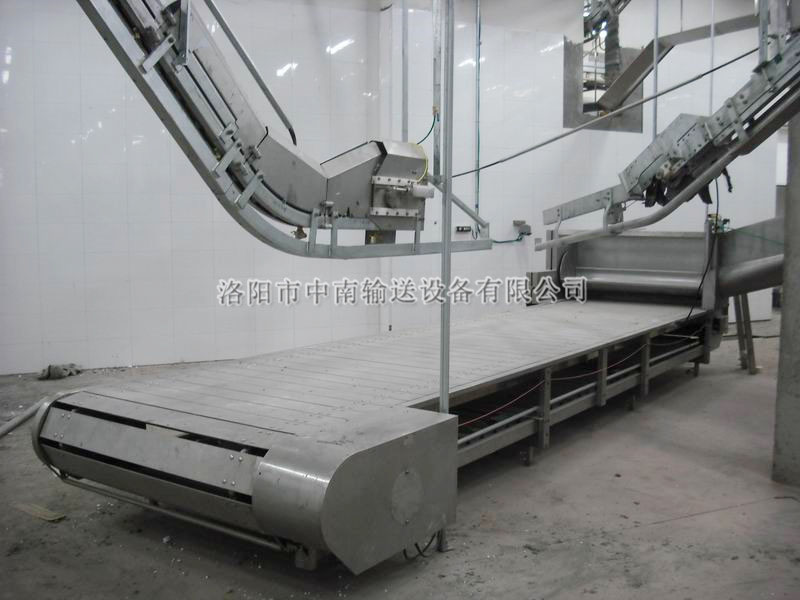 平板輸送機(jī):該機(jī)用于麻電后的牲豬輸送, 上掛至放血線的配套設(shè)備。該機(jī)主要由機(jī)架、電機(jī)、減速機(jī)、板鏈、鏈輪,拖輥等部件構(gòu)成,具有結(jié)構(gòu)簡單、運(yùn)轉(zhuǎn)平穩(wěn),維修方便等優(yōu)點(diǎn)。是大、中型屠宰加工廠不可缺少的設(shè)備。
